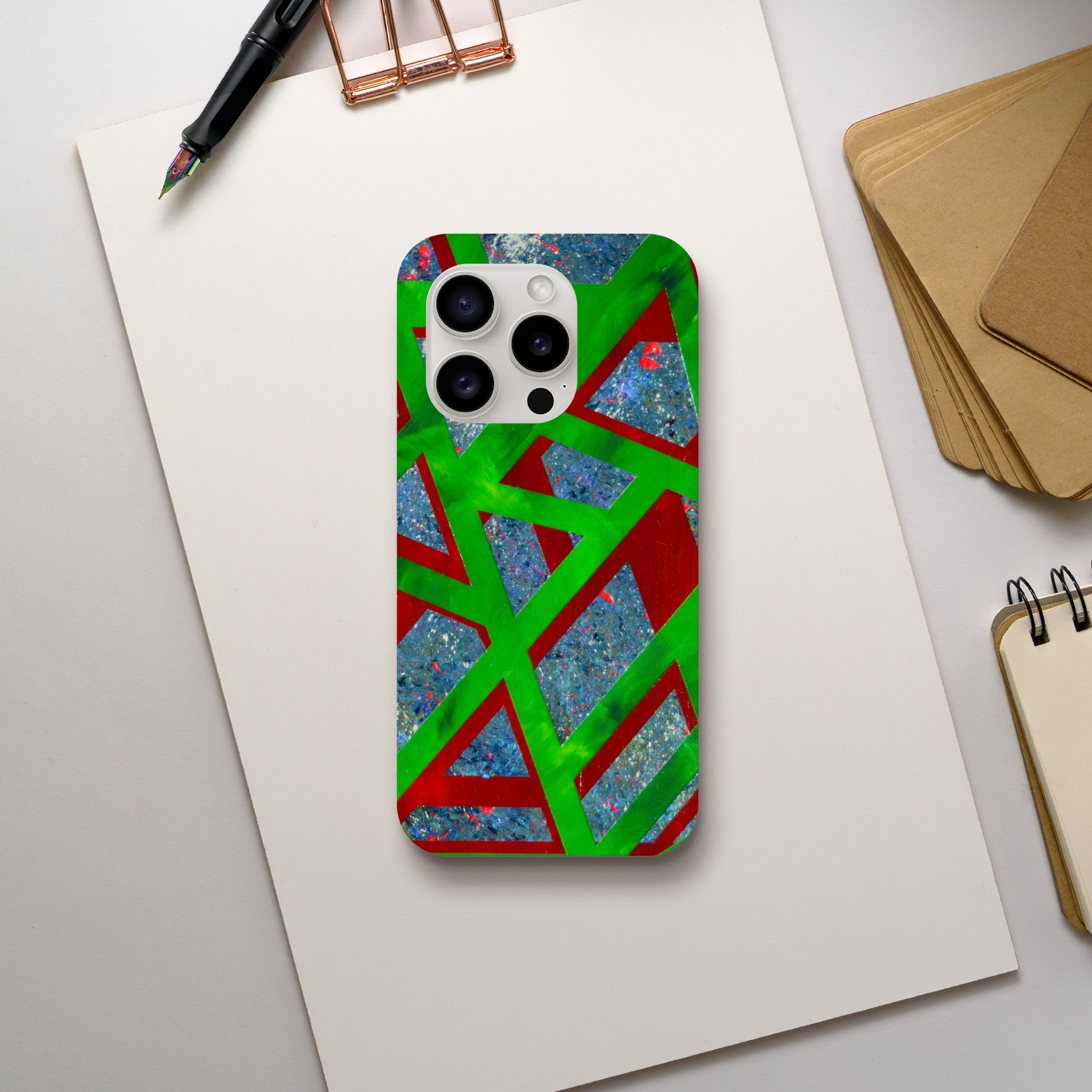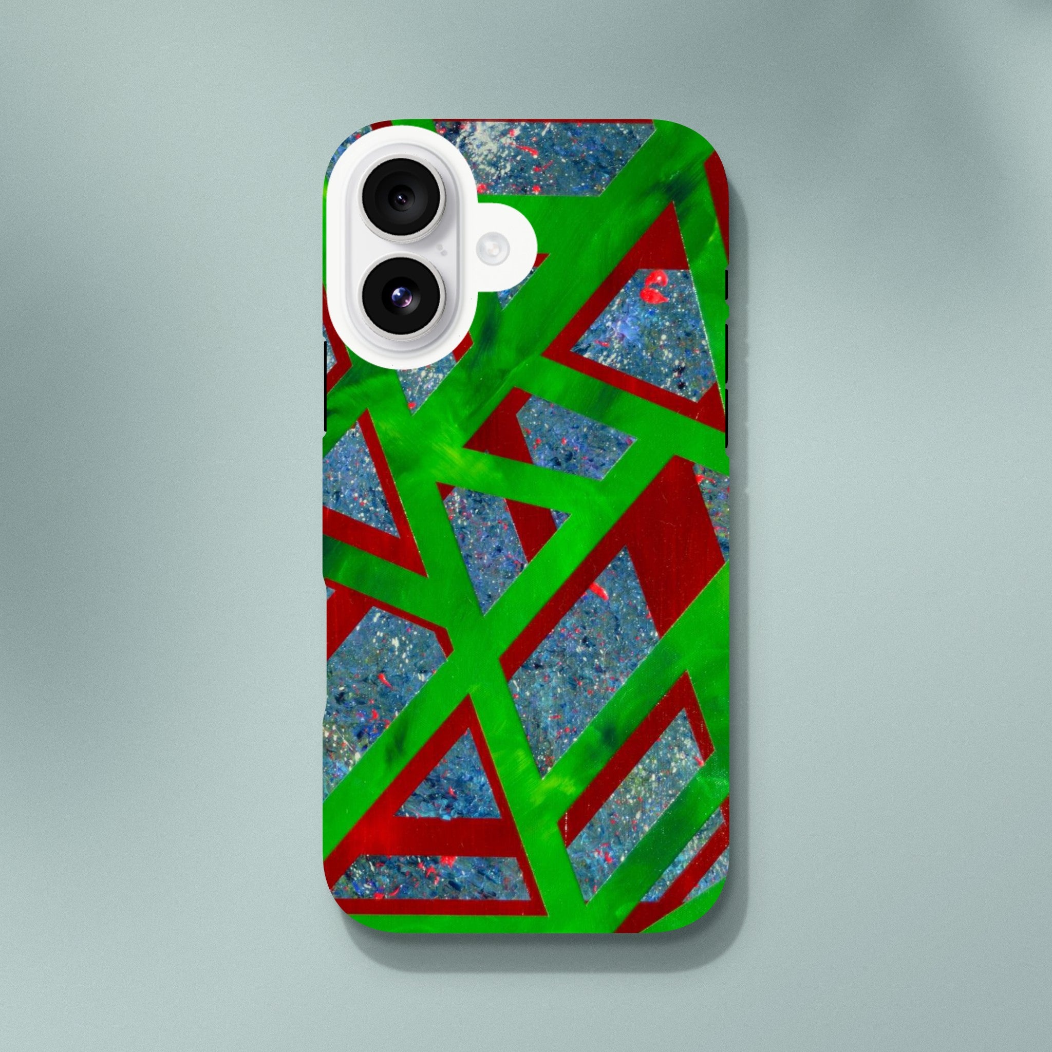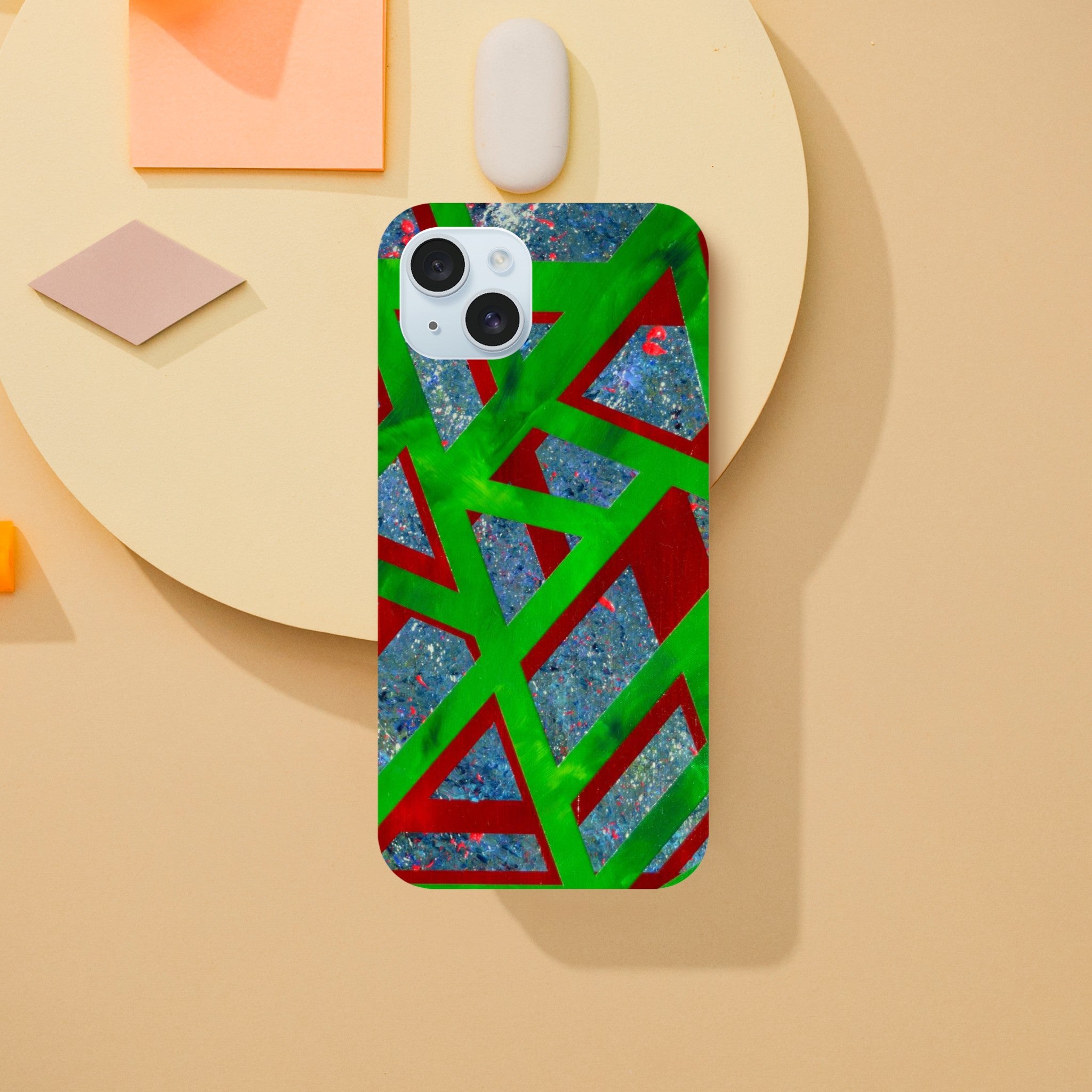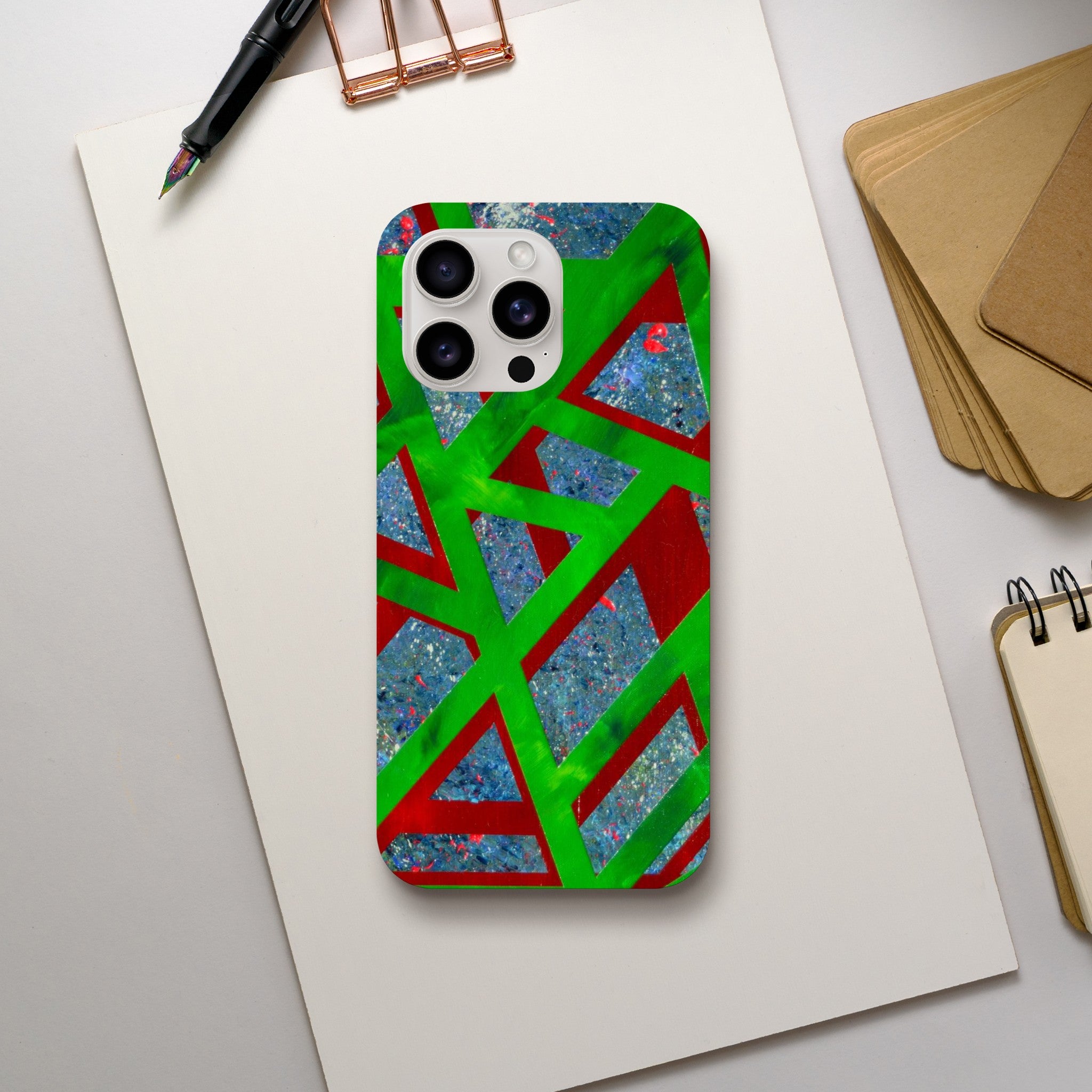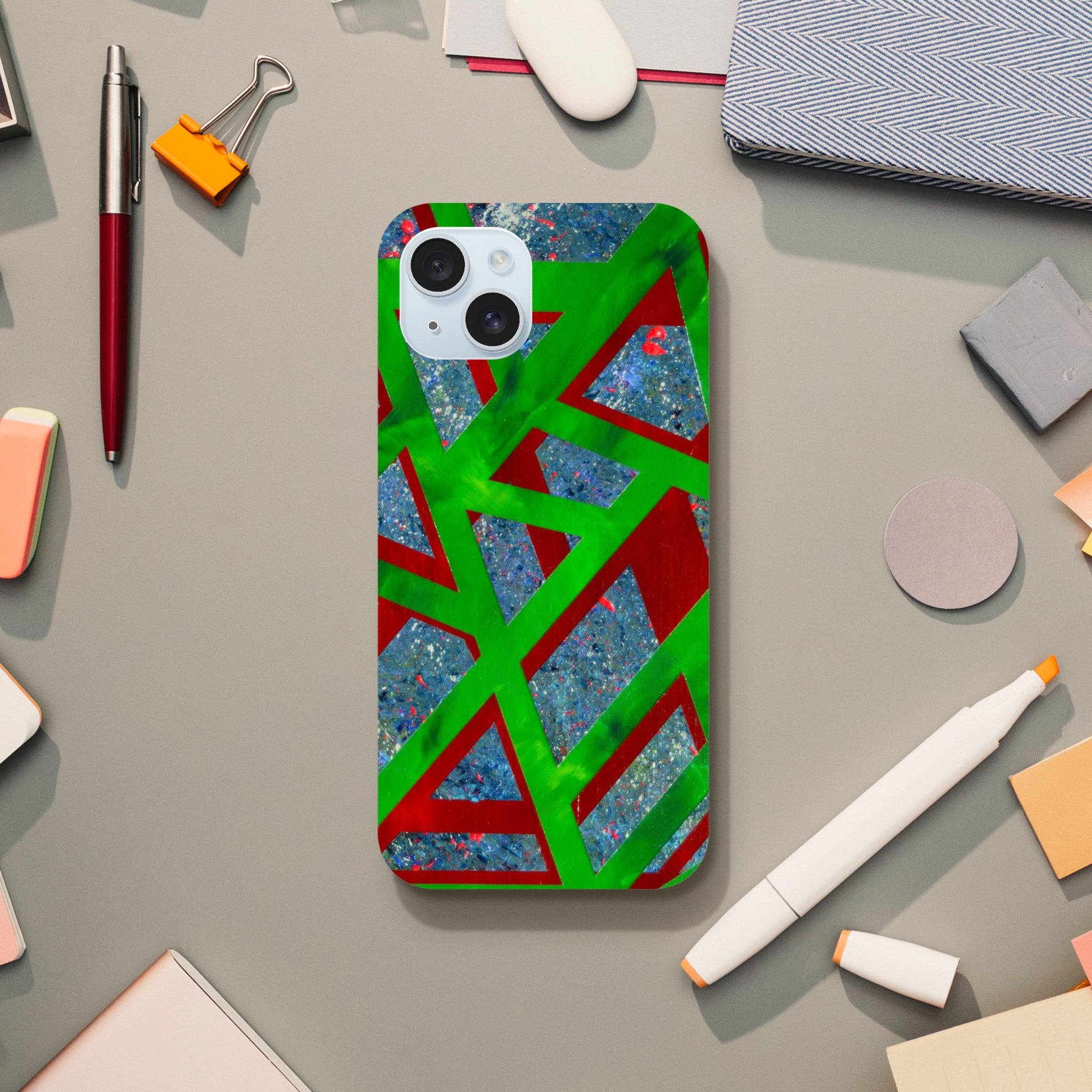 Abstract Art iPhone Case - A Walk in the Garden | Tough Case for iPhone 16, 15, 14, 13, 12 | Green & Red Geometric Design | Heavy Duty Dual Layer Protection | Unique Artist Phone Cover