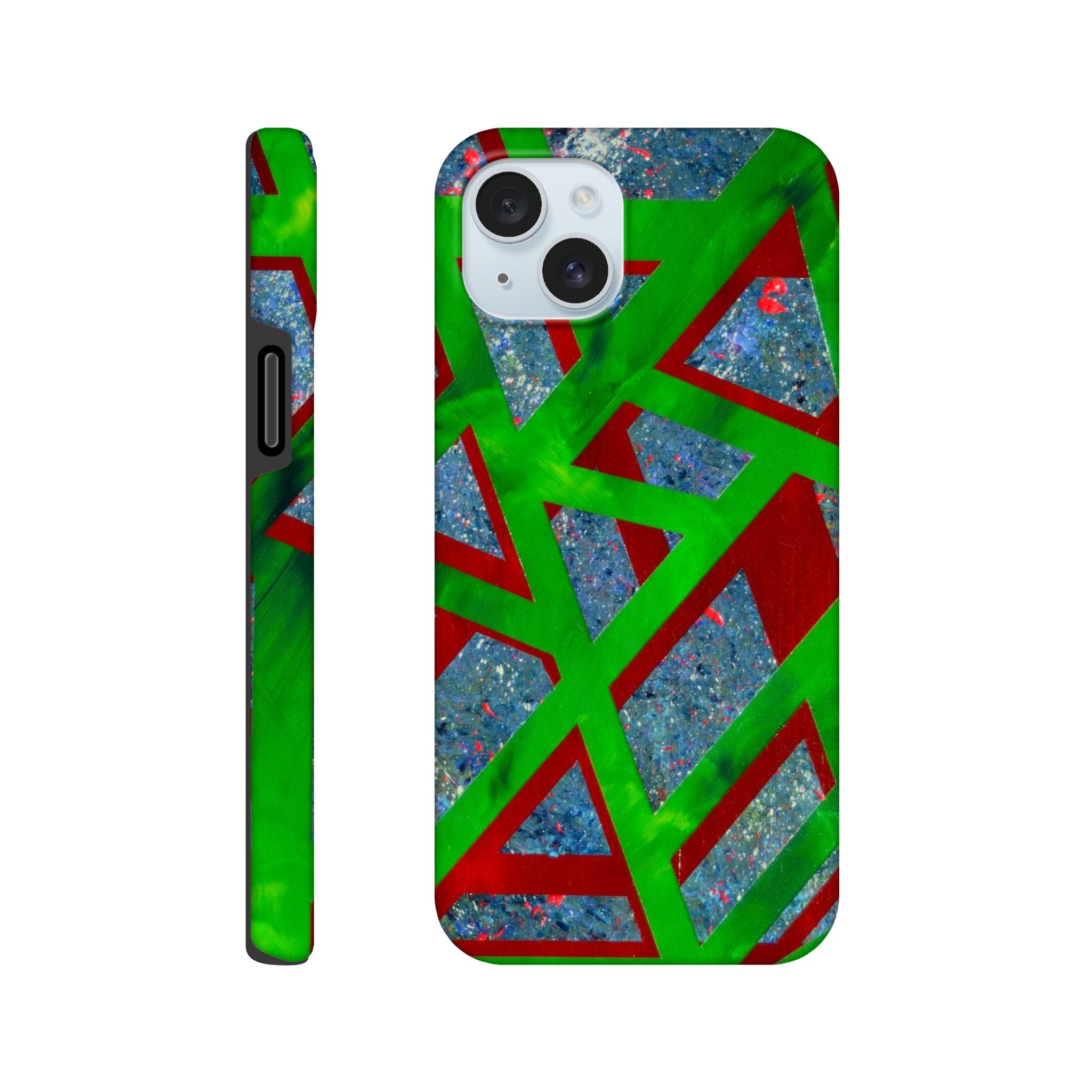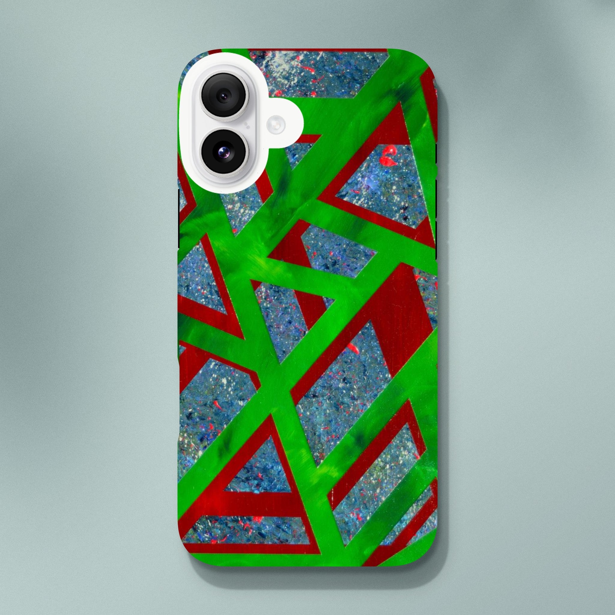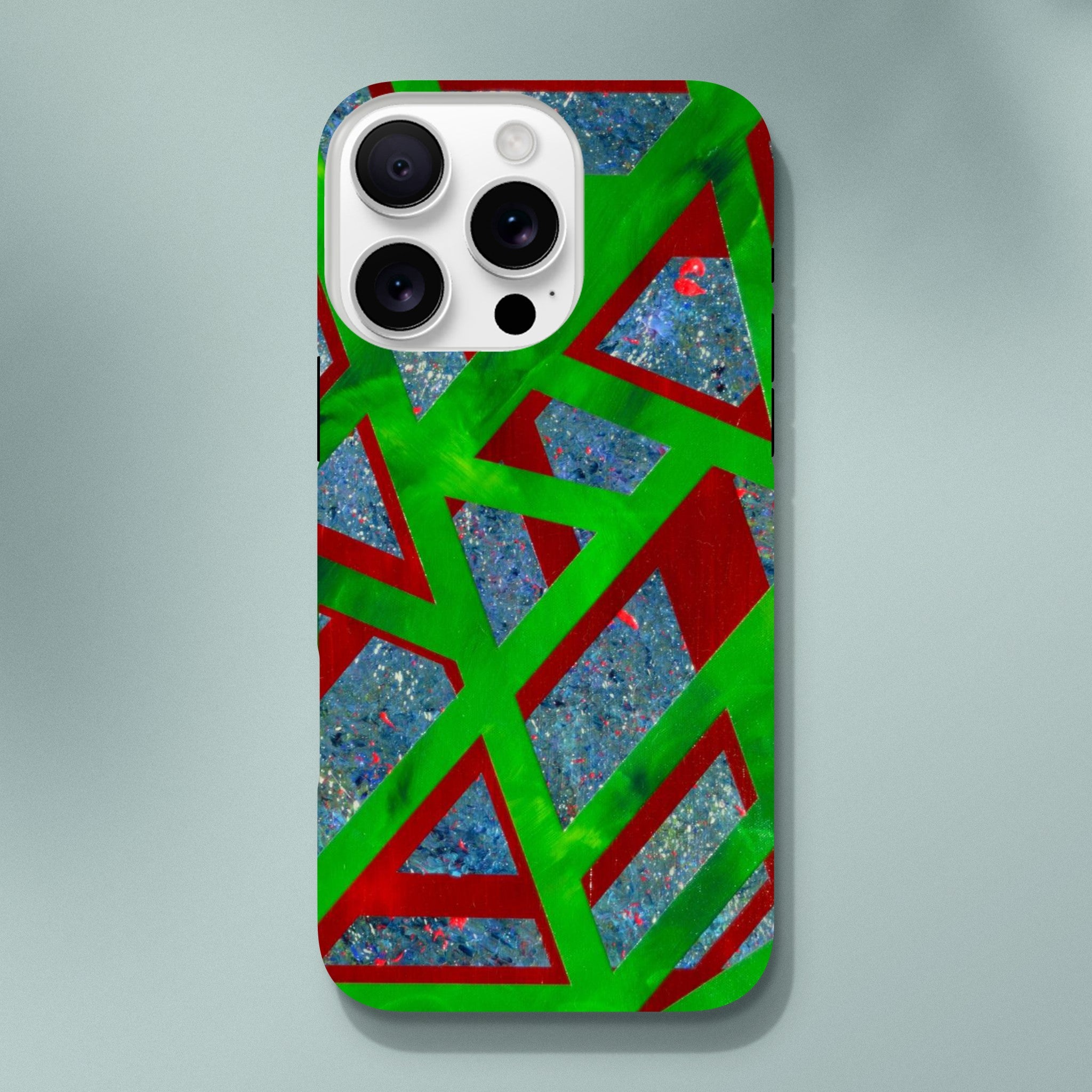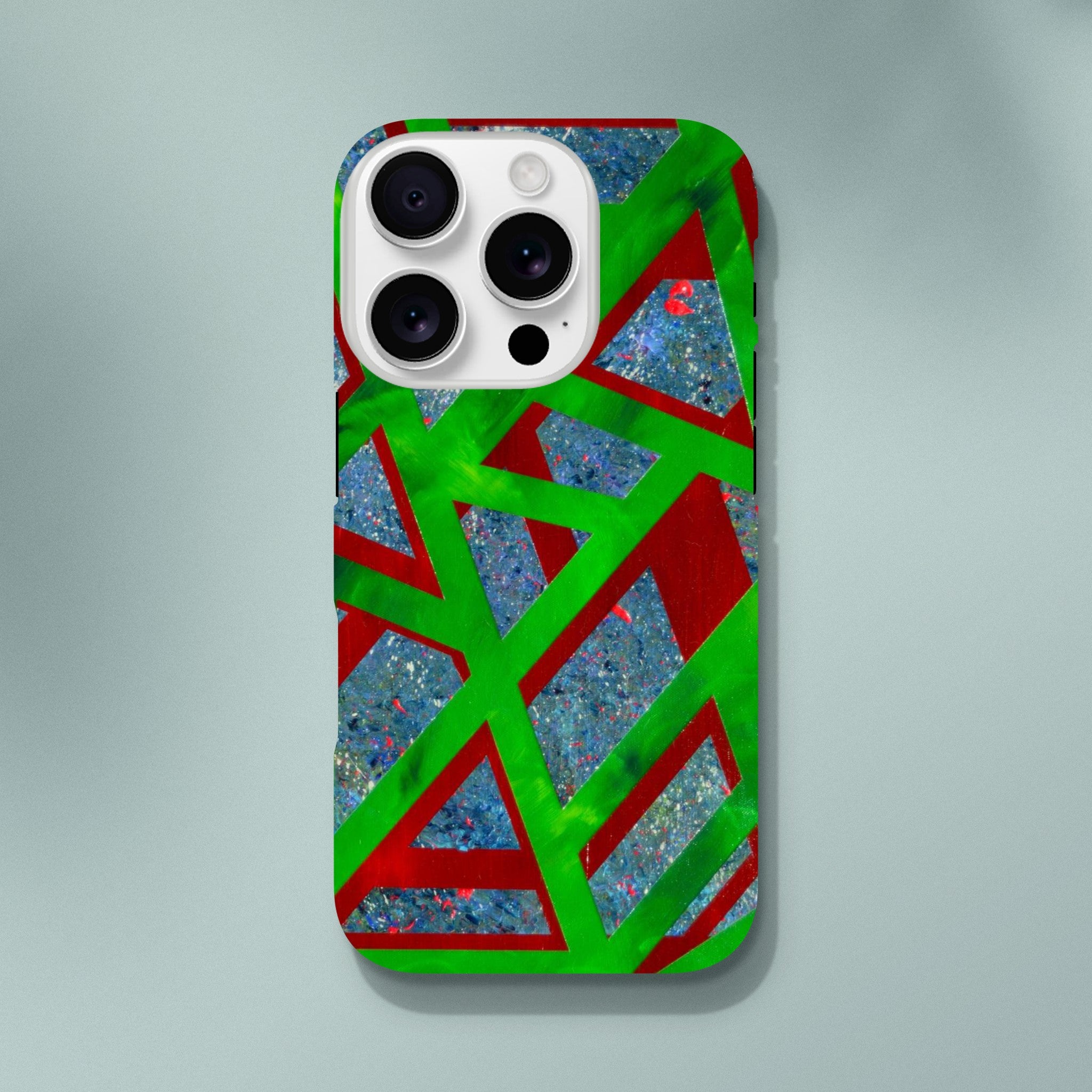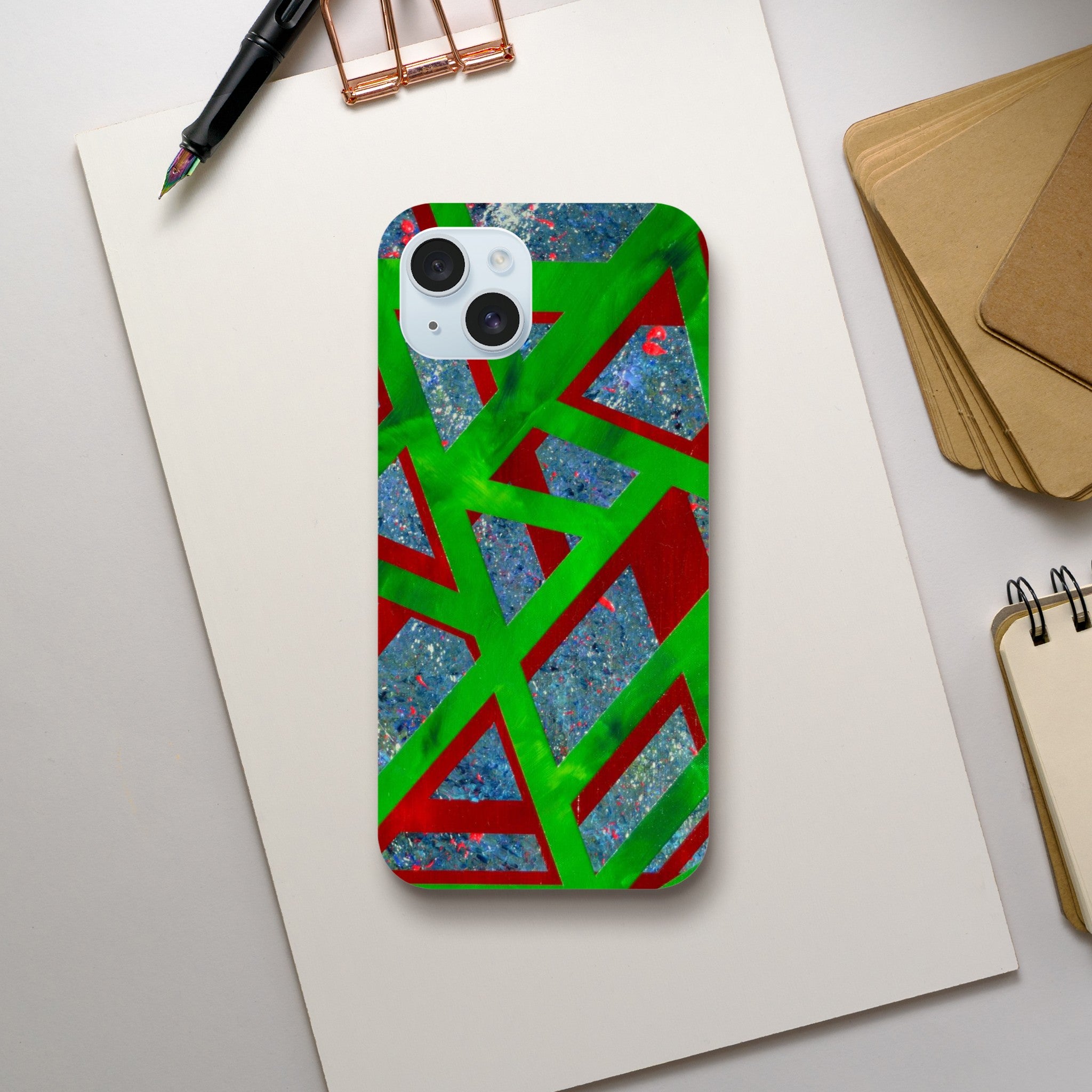 Abstract Art iPhone Case - A Walk in the Garden | Tough Case for iPhone 16, 15, 14, 13, 12 | Green & Red Geometric Design | Heavy Duty Dual Layer Protection | Unique Artist Phone Cover