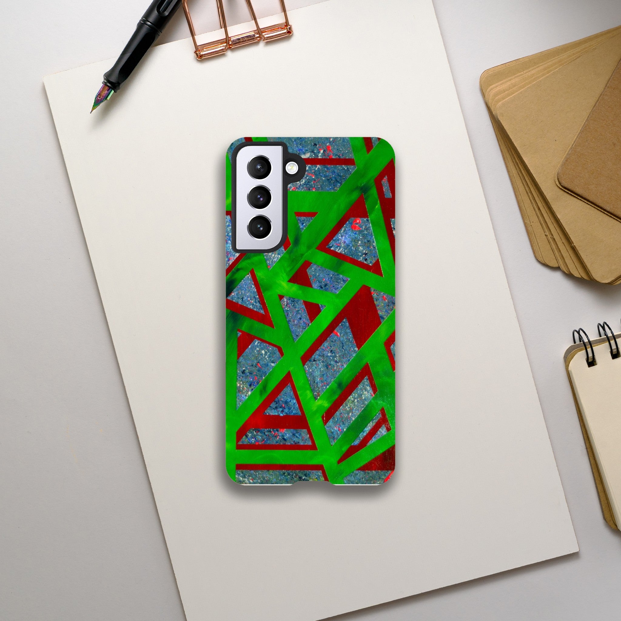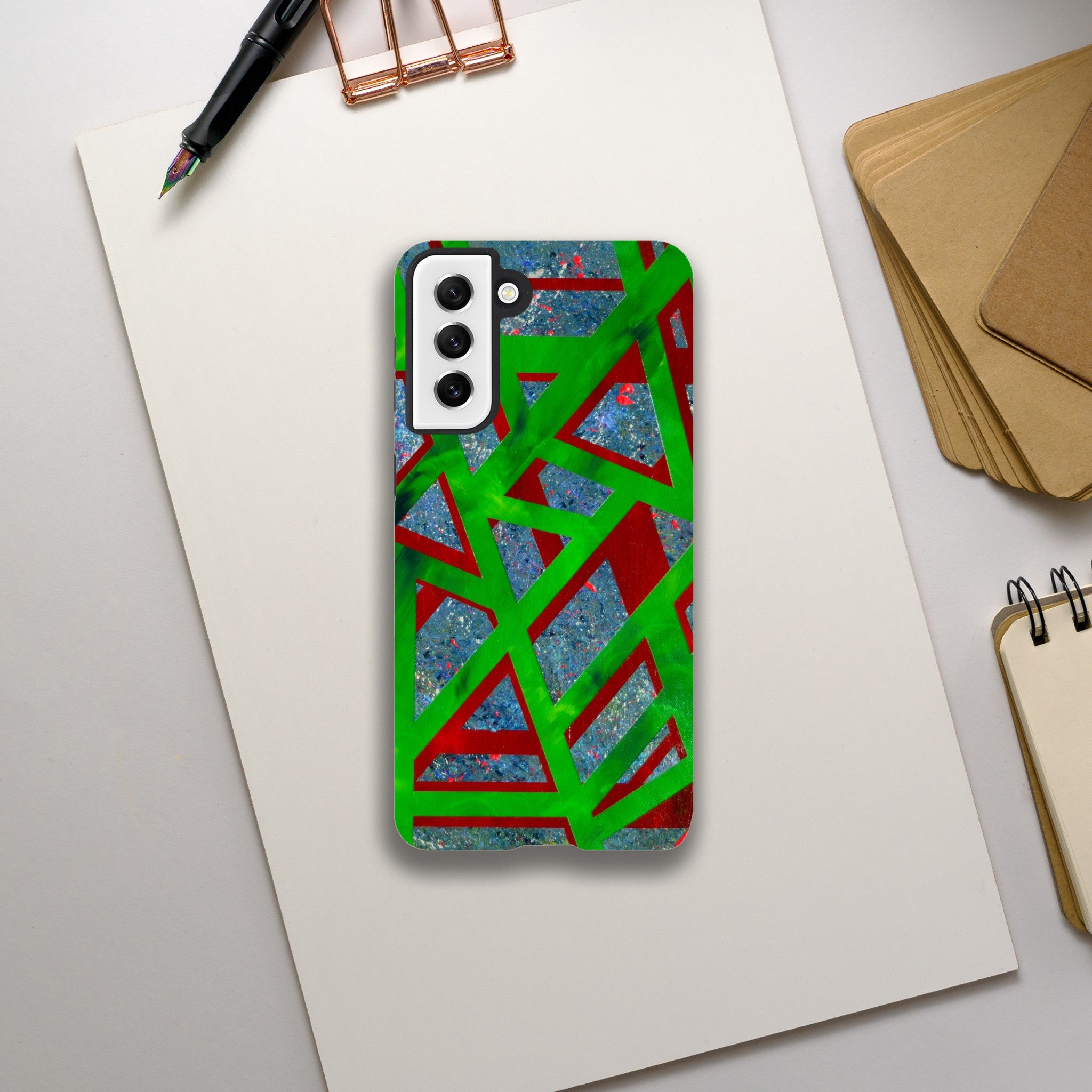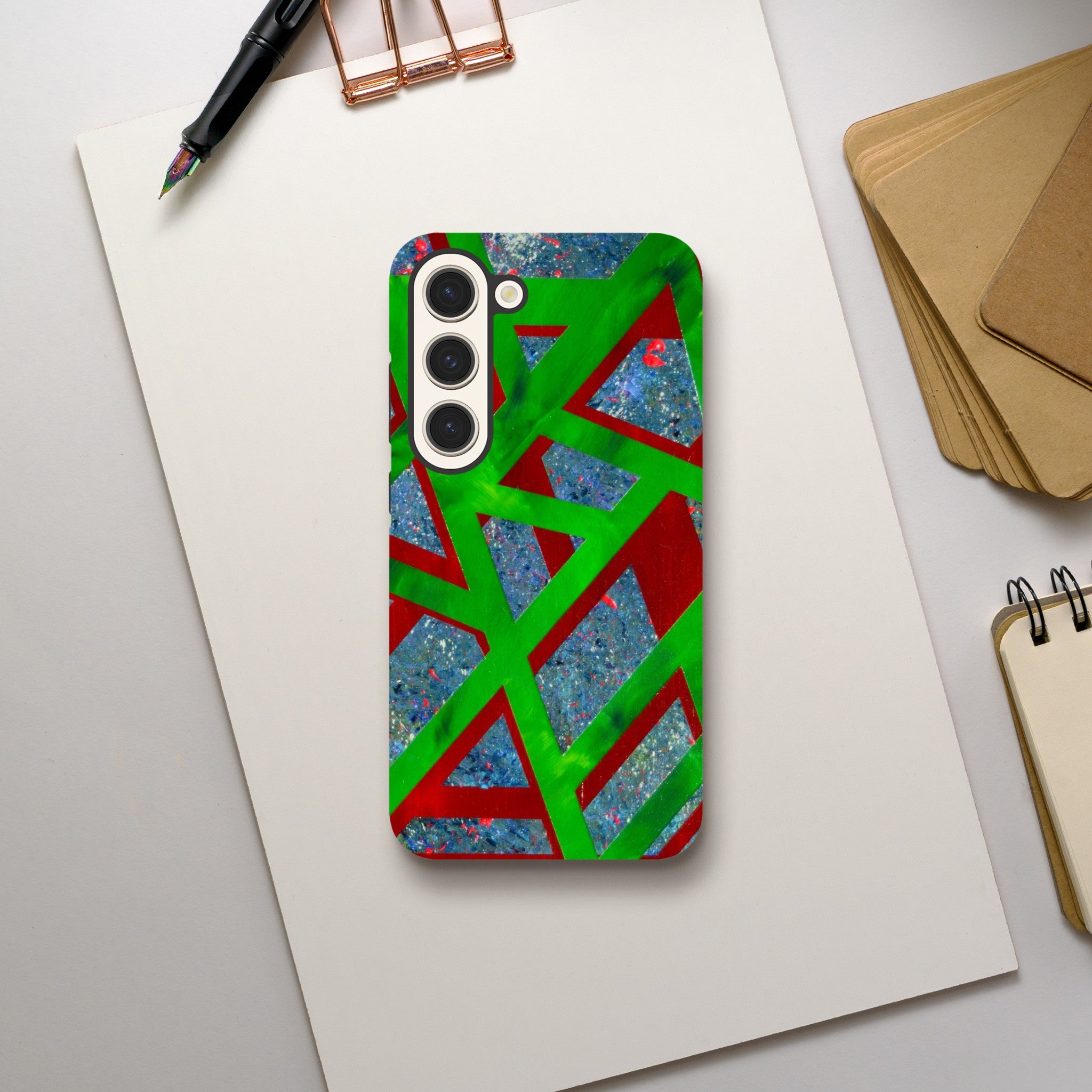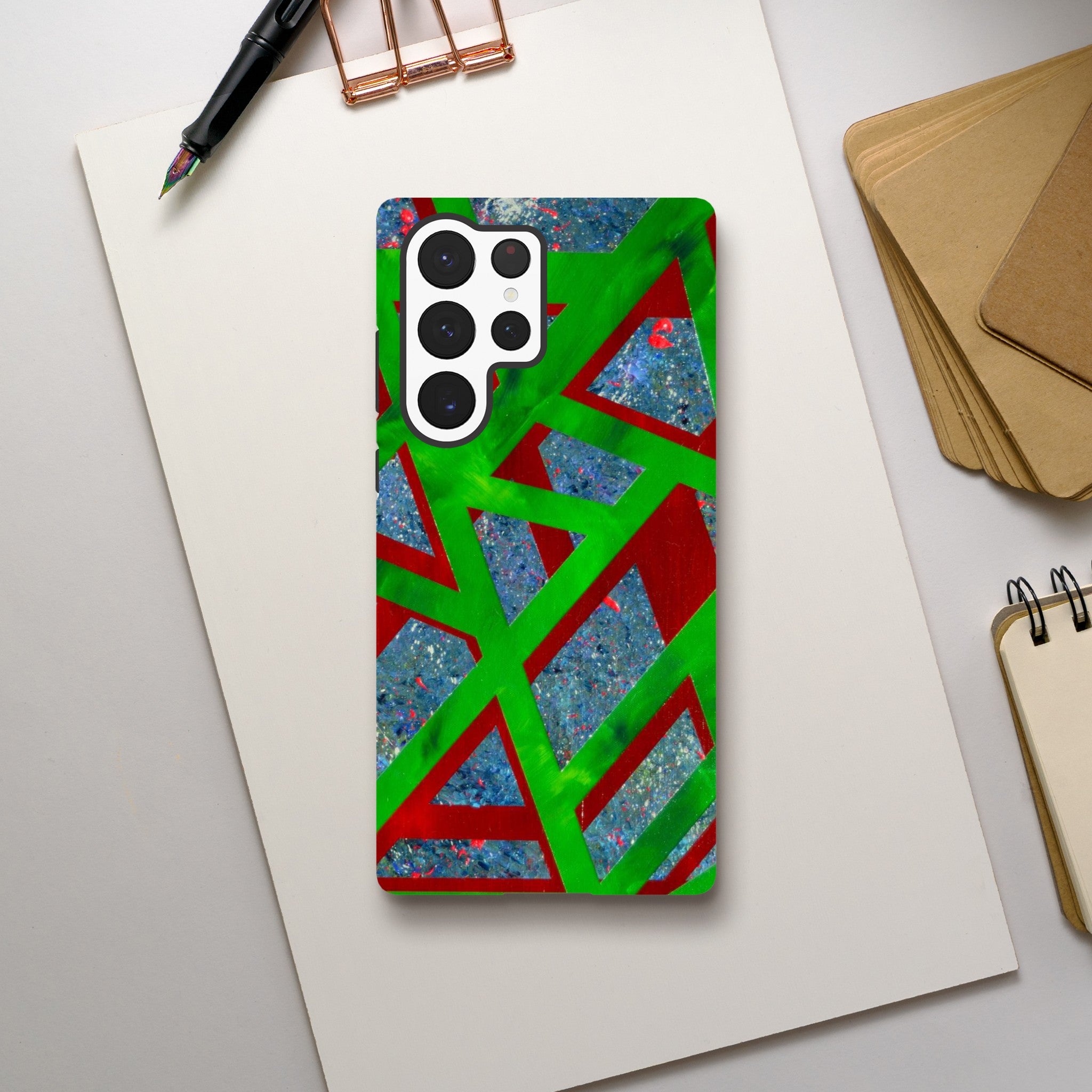 Samsung Galaxy Case - A Walk in the Garden | Tough Abstract Art Cover for S24, S23, S22, S21 Ultra, Plus, FE | Green & Red Geometric Design | Heavy Duty Protective Case | Unique Artist Gift