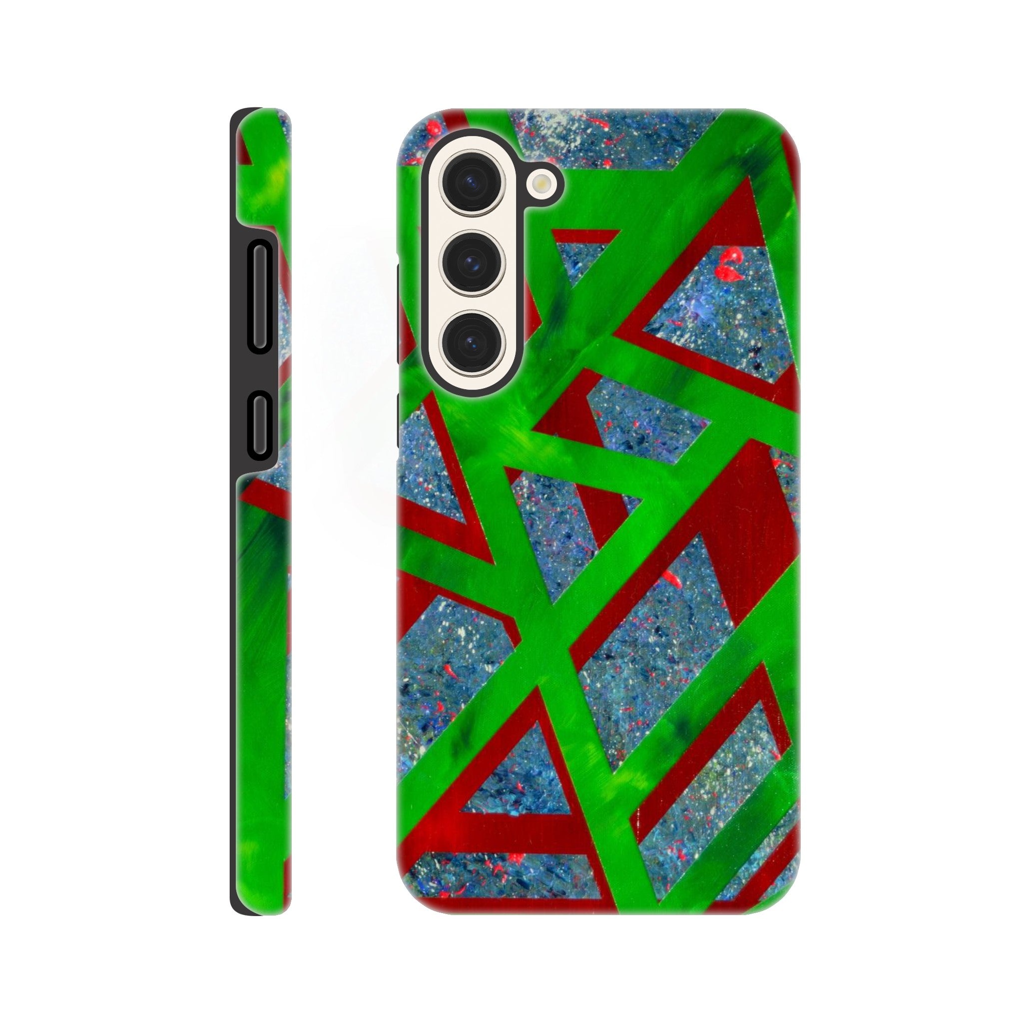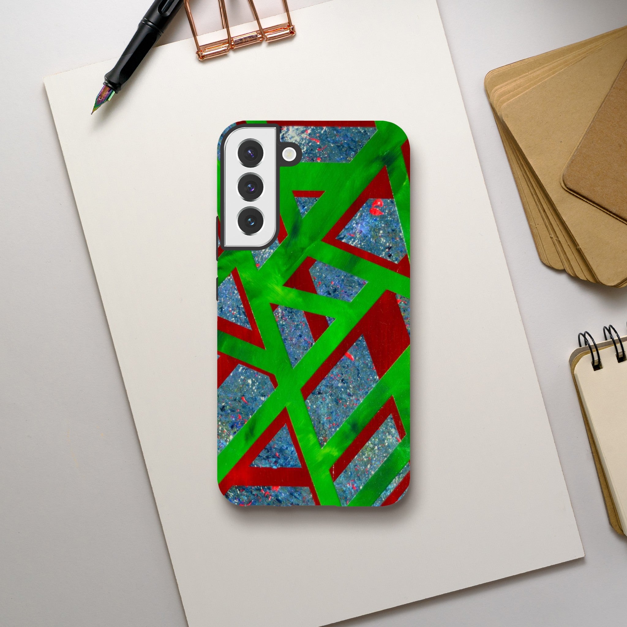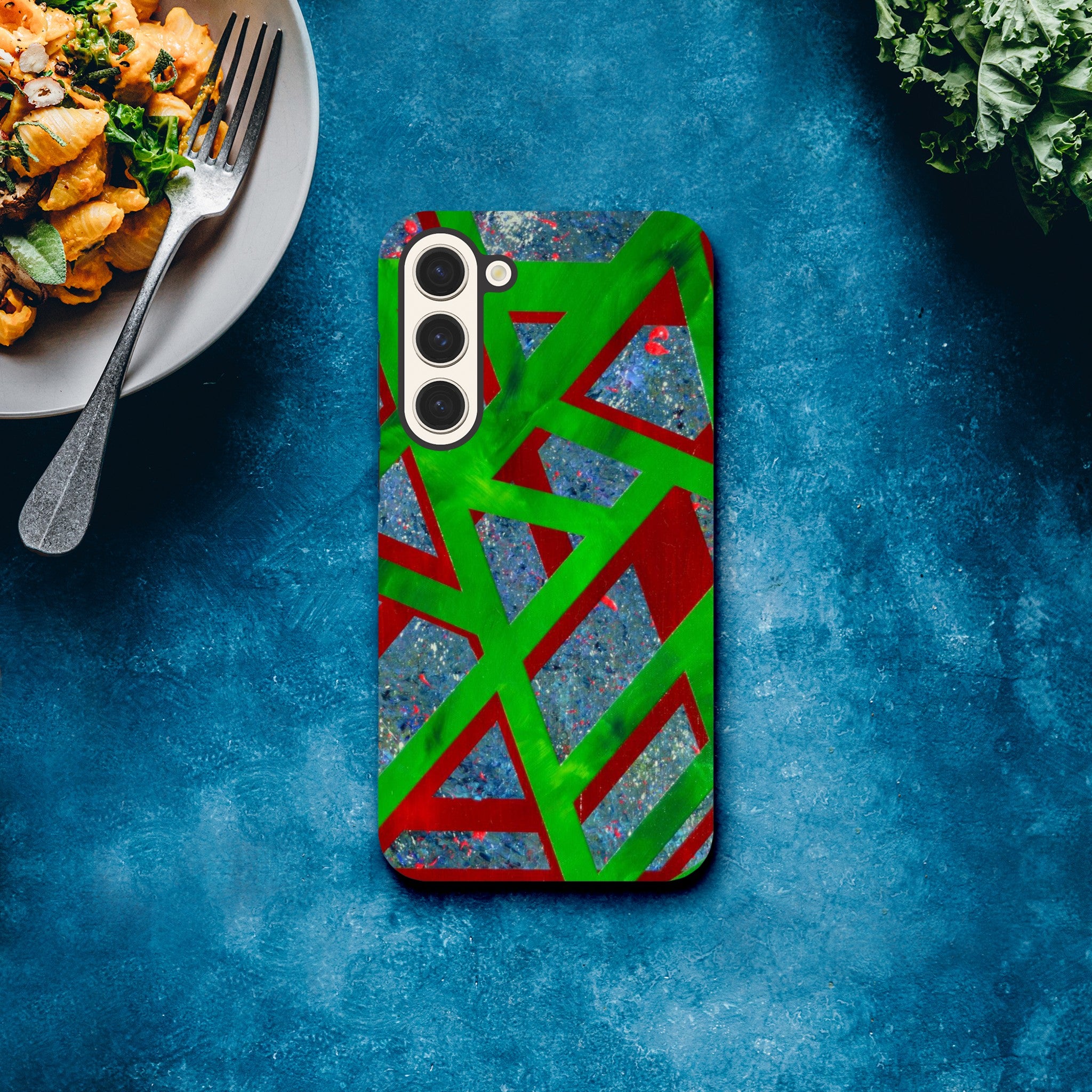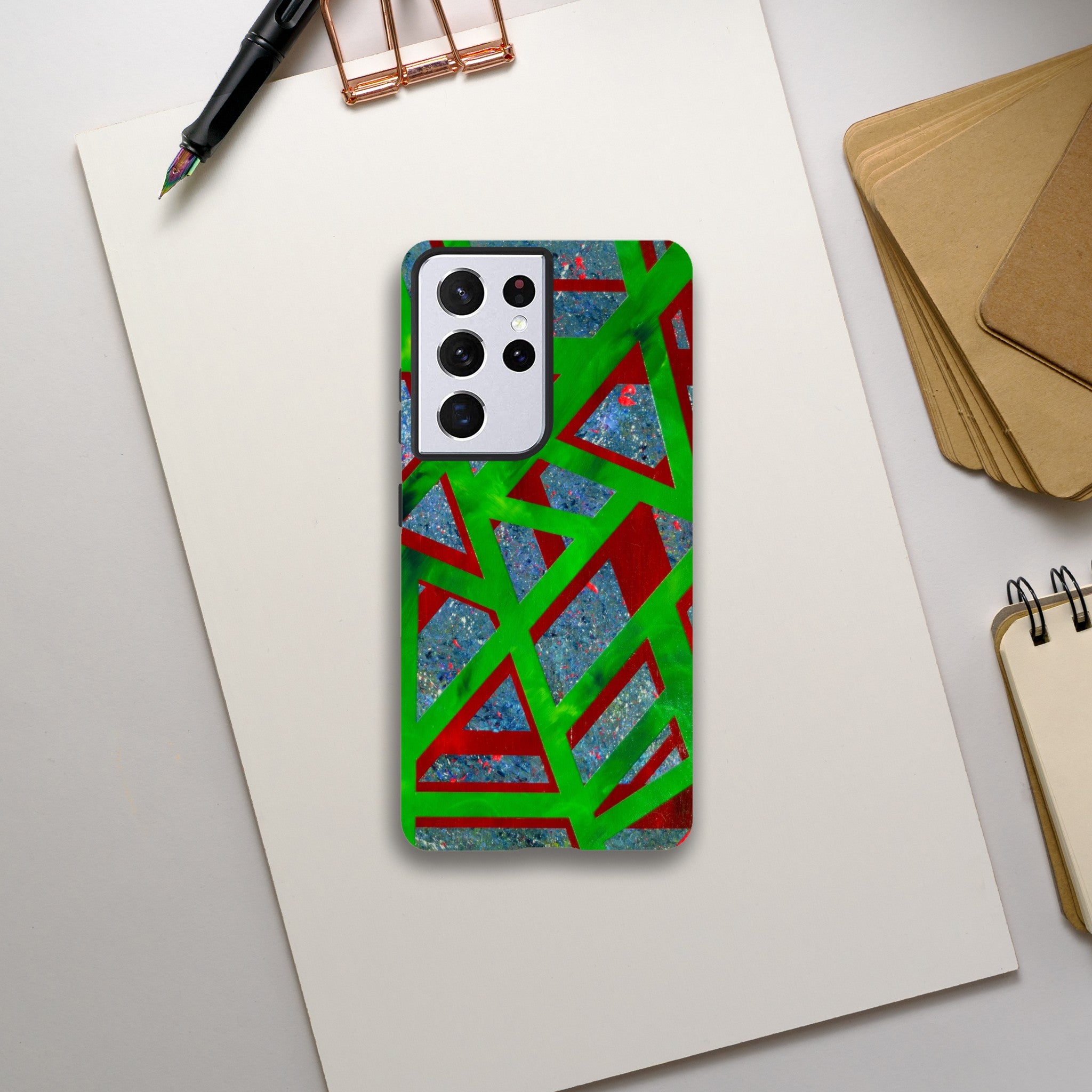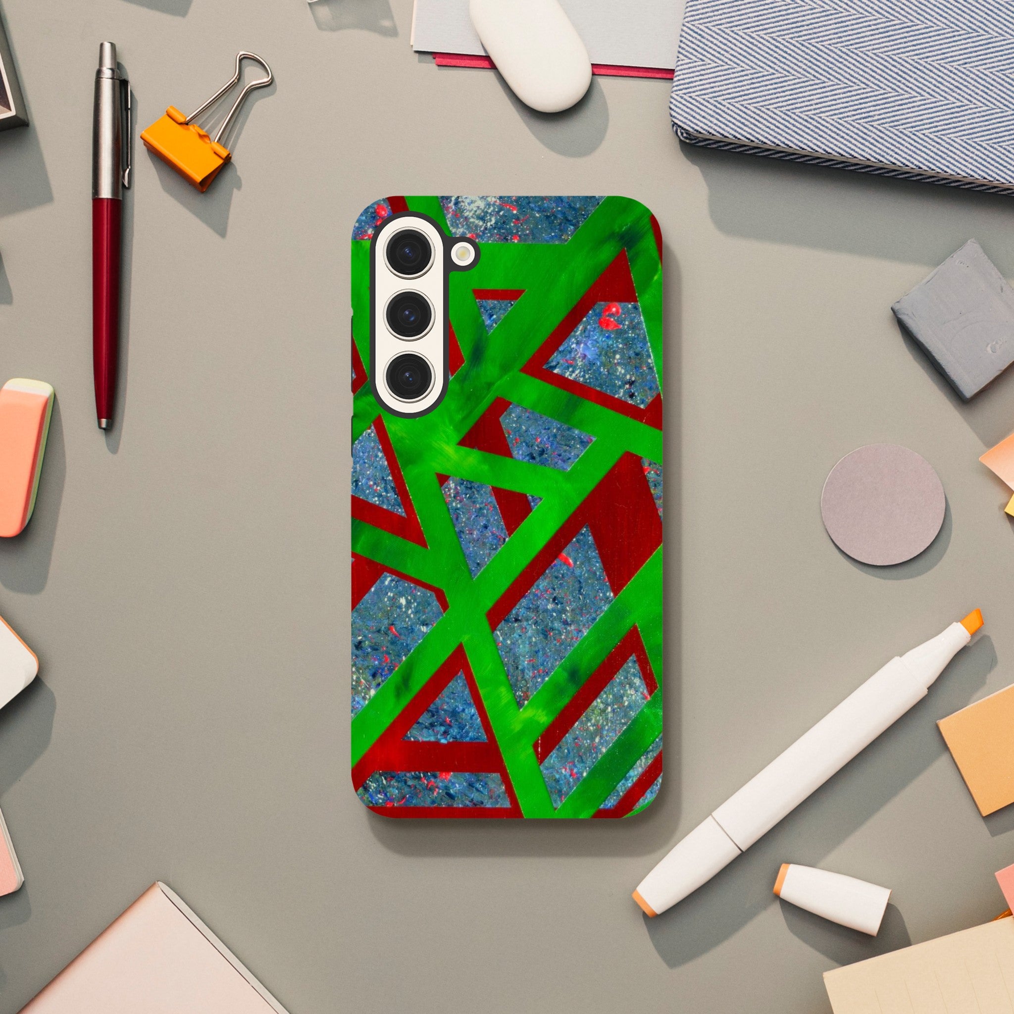Samsung Galaxy Case - A Walk in the Garden | Tough Abstract Art Cover for S24, S23, S22, S21 Ultra, Plus, FE | Green & Red Geometric Design | Heavy Duty Protective Case | Unique Artist Gift