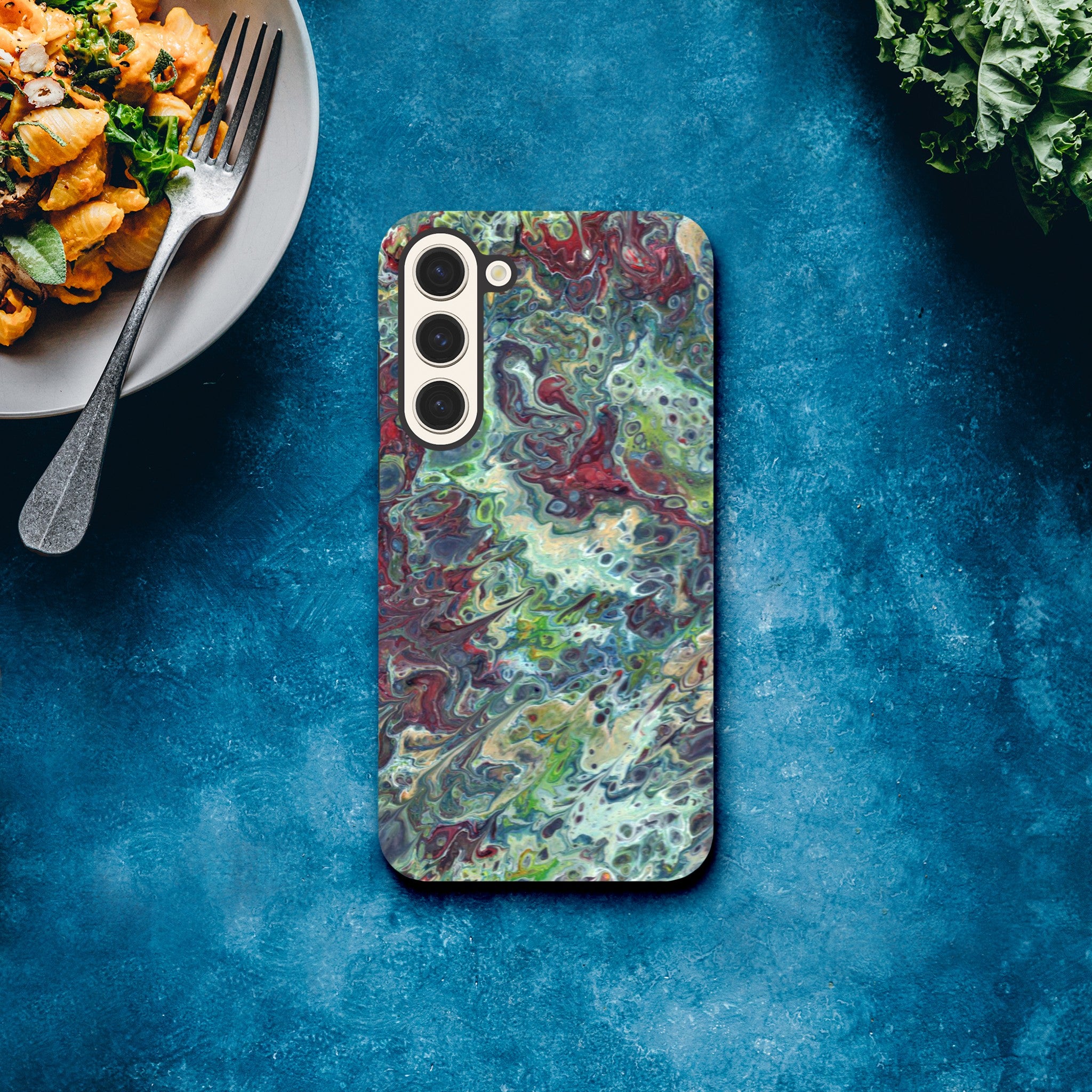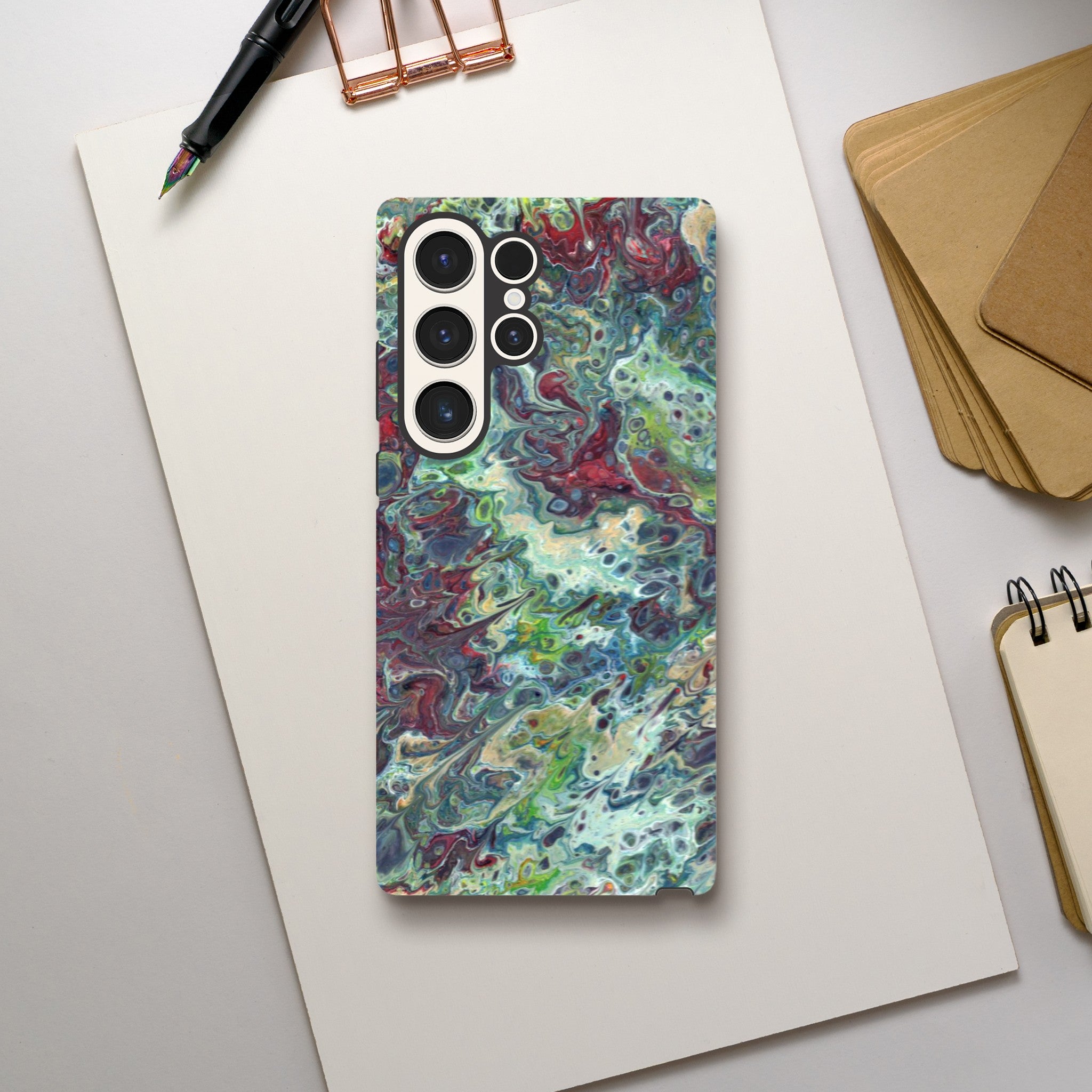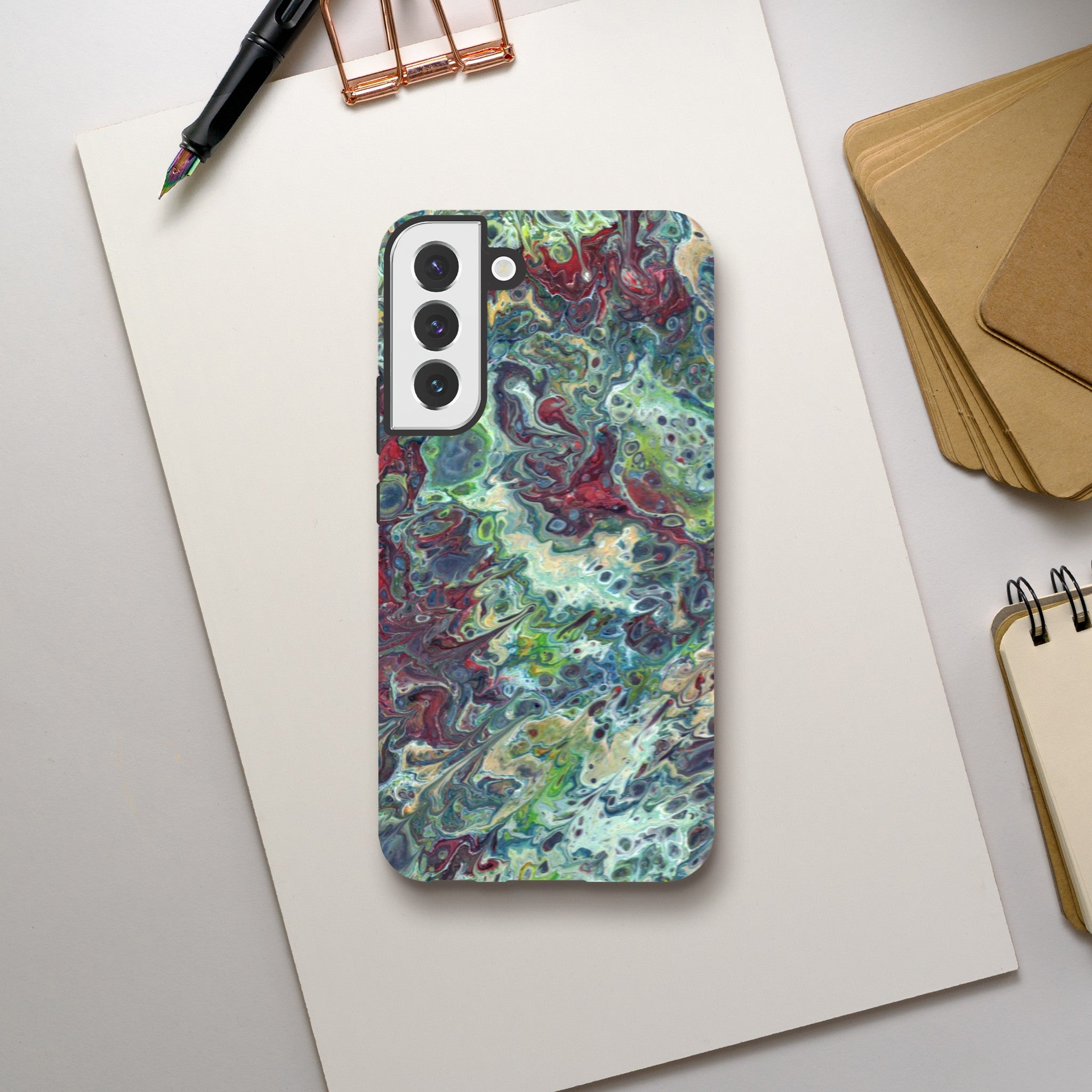 Give your Samsung device the ultimate defense with the "A State of Flux" Tough Case. Featuring an original fluid abstract painting, this design showcases a mesmerizing interaction of deep teals, mossy greens, and intense crimson accents, creating a rich, multi-layered texture that feels alive.