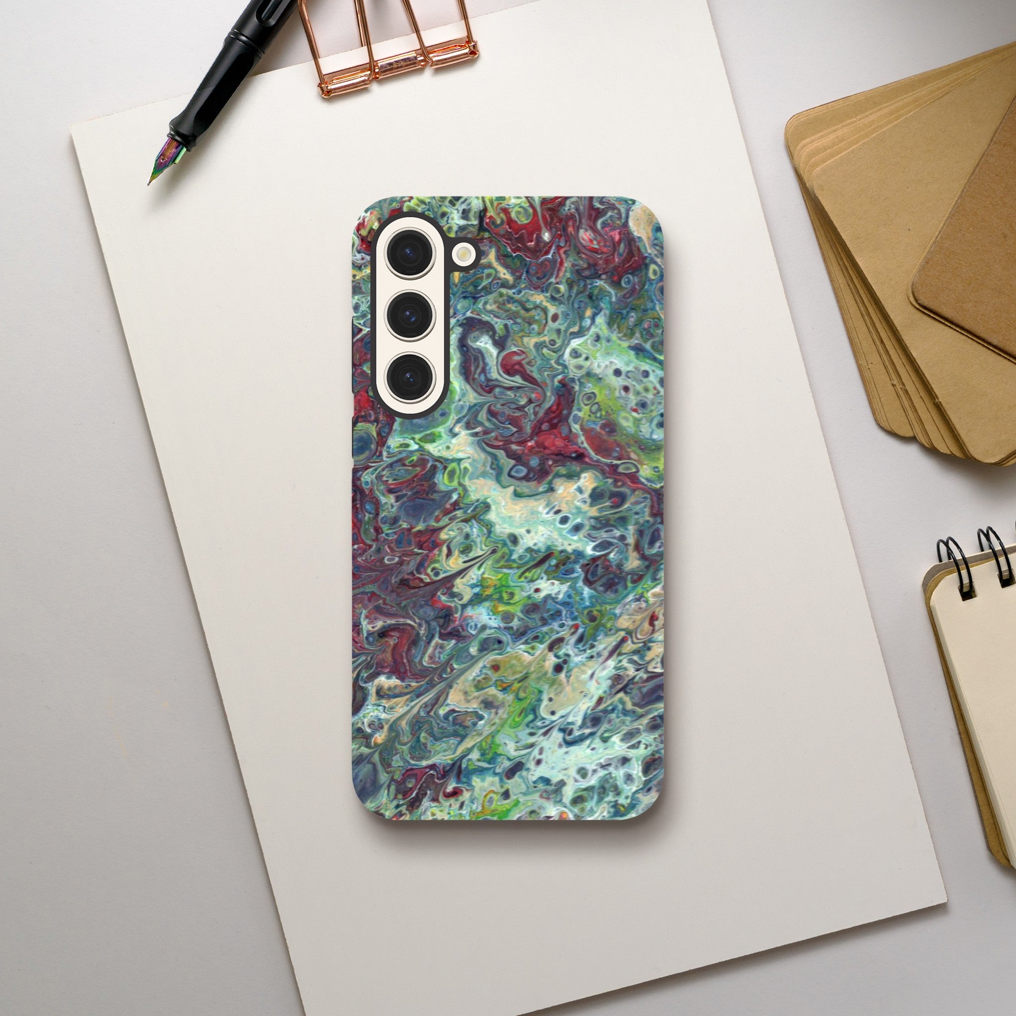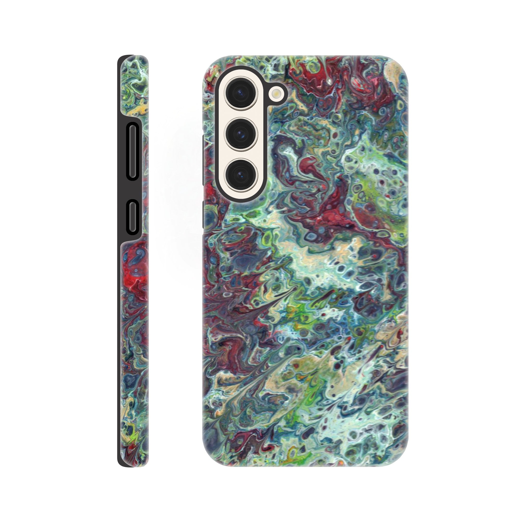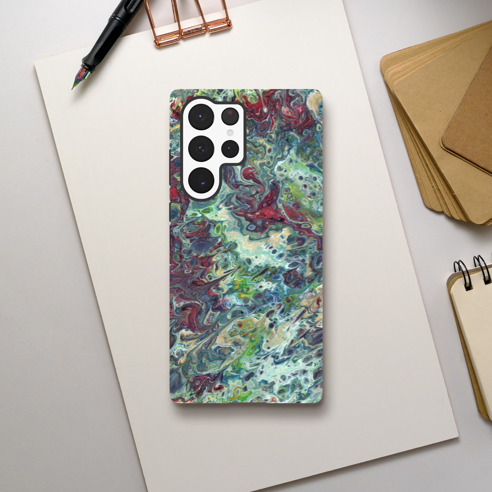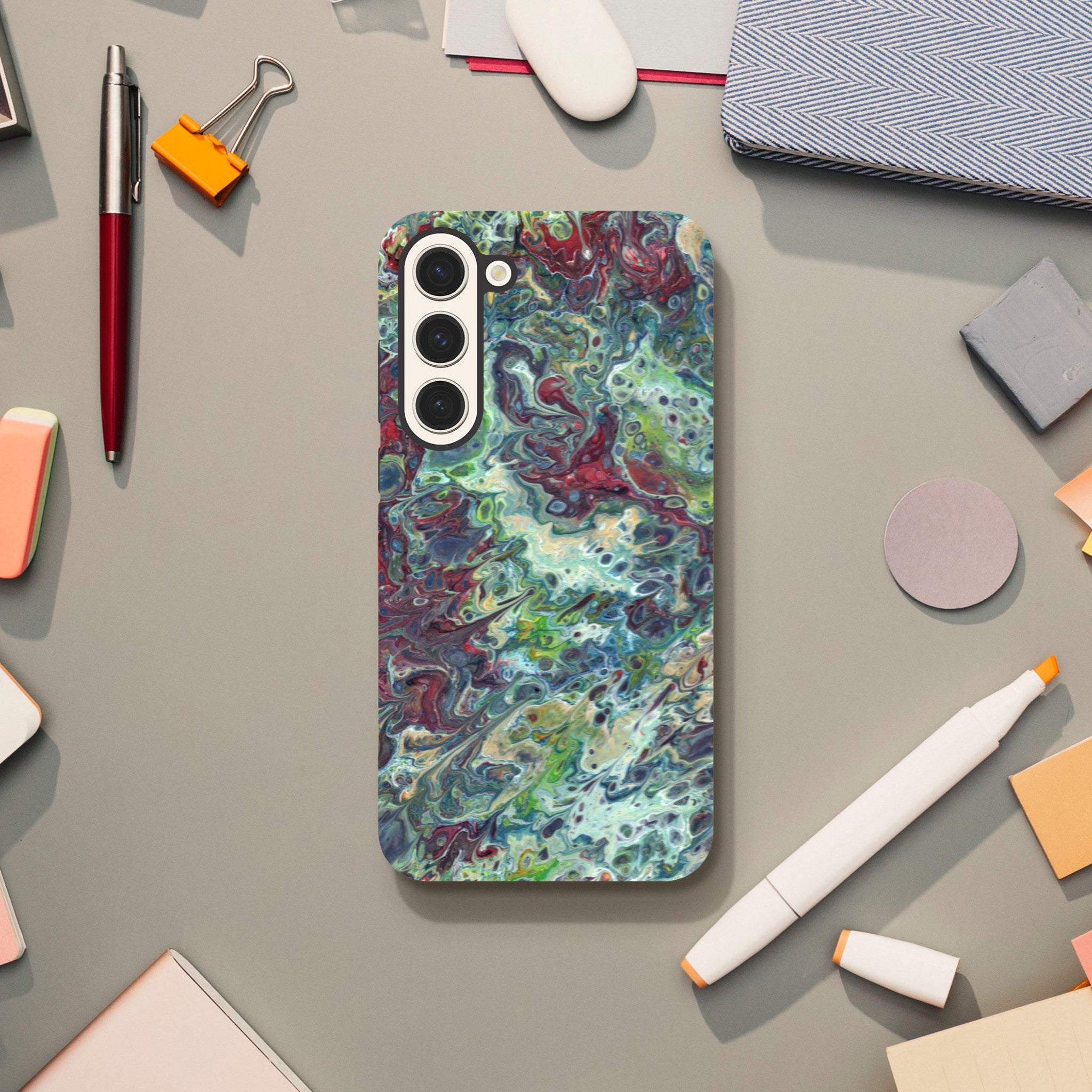 Give your Samsung device the ultimate defense with the "A State of Flux" Tough Case. Featuring an original fluid abstract painting, this design showcases a mesmerizing interaction of deep teals, mossy greens, and intense crimson accents, creating a rich, multi-layered texture that feels alive.
